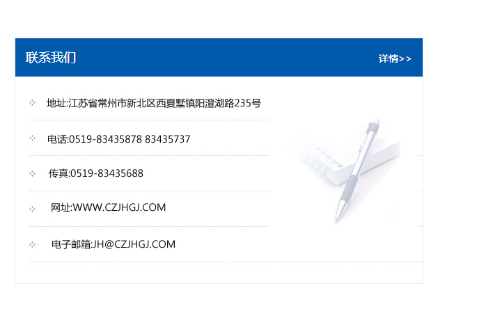 地址:常州市新北區友邦商務大廈1幢16、17層  電話:0519-85101652  傳真:0519-85112595  郵編:213022  網址:www.cz-jiayue_cn.axonjsk.com  郵箱:xiajifengaa@163.com